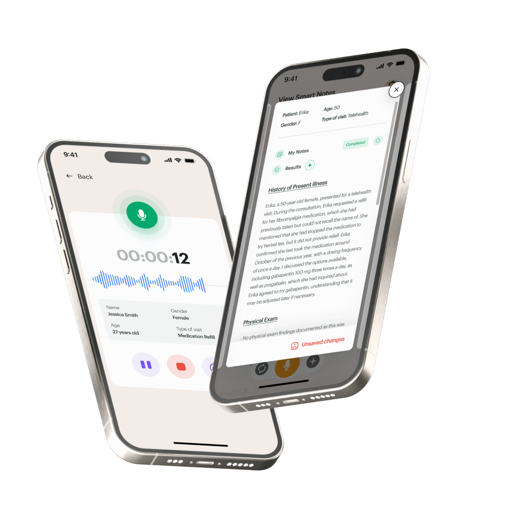 Capture conversations, dictate freely, and review notes on the go, all with smart patient intake that saves time every visit.